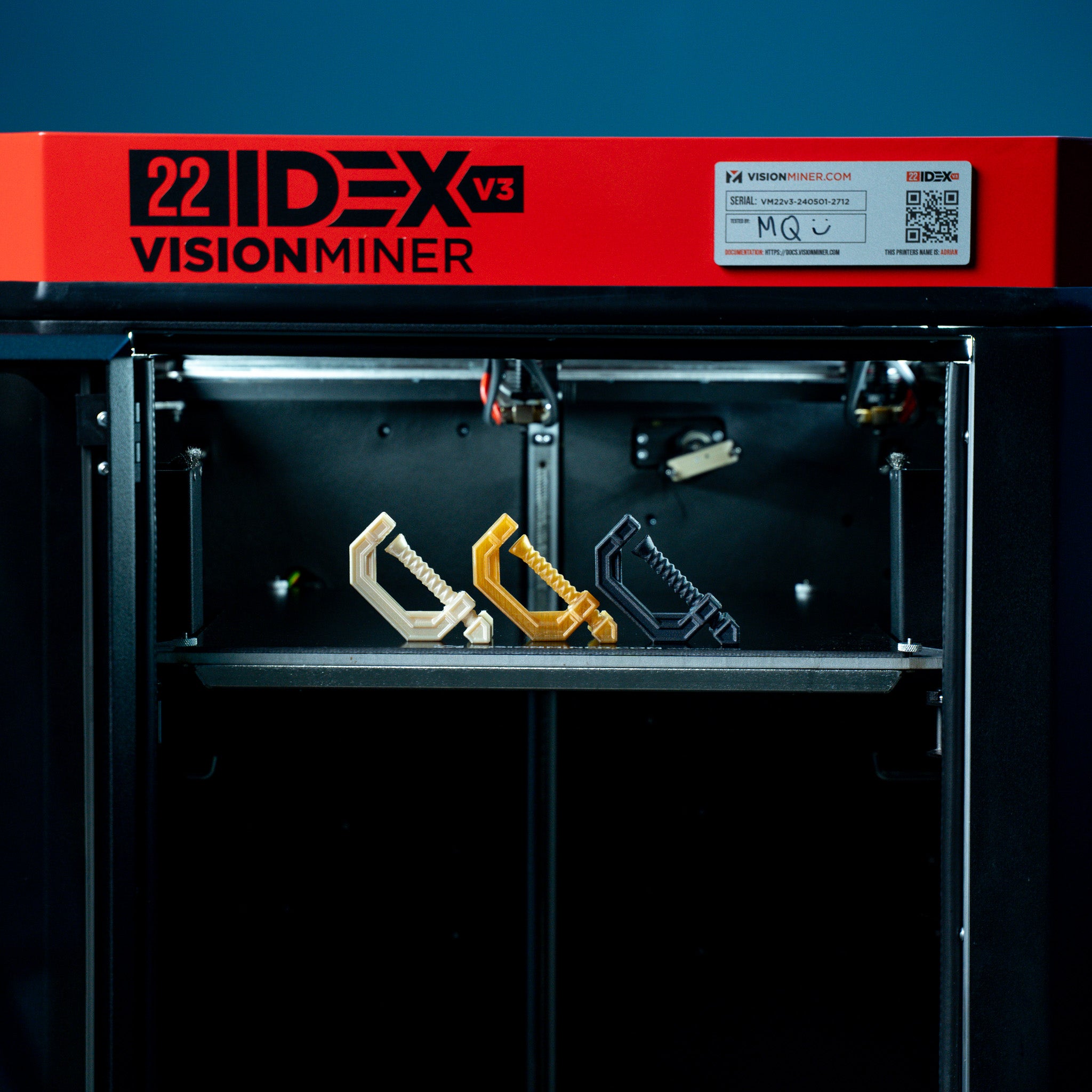 Performance thermoplastics are next to impossible without a heated build environment - the 22 IDEX heats up to 100ºC+, enabling functional high-temp materials with solid mechanical properties. Dual chamber thermistors monitor the temperature, with auxiliary convection fans ensuring an evenly-heated build volume.