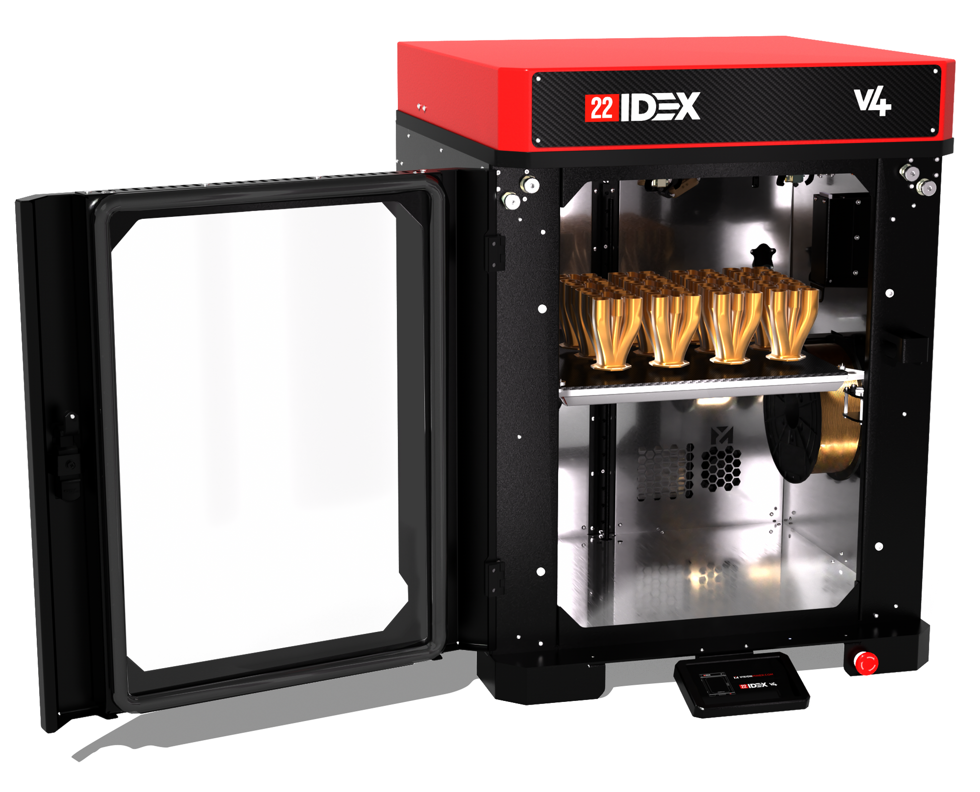 3DXTECH is now an official supplier of the 22 IDEX v4 printer from Vision Miner. With dual independent extruders capable of 500ºC, an actively-heated chamber reaching 100ºC, and a triple-motor, true-self-leveling 200ºC bed, coupled with the fully open material system, the 22 IDEX v3 unlocks another level of automation, ease-of-use, and affordability for high-temp additive manufacturing.