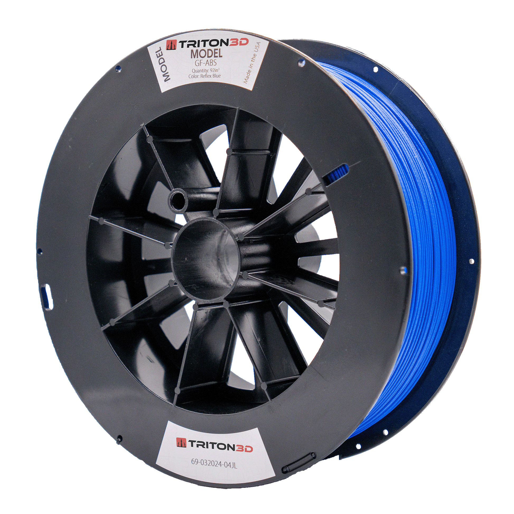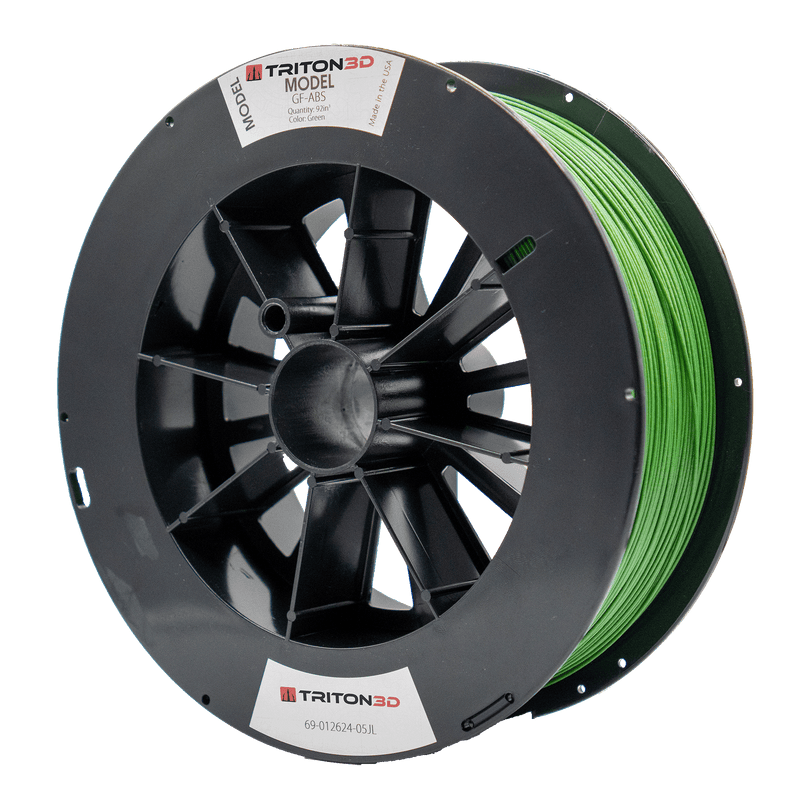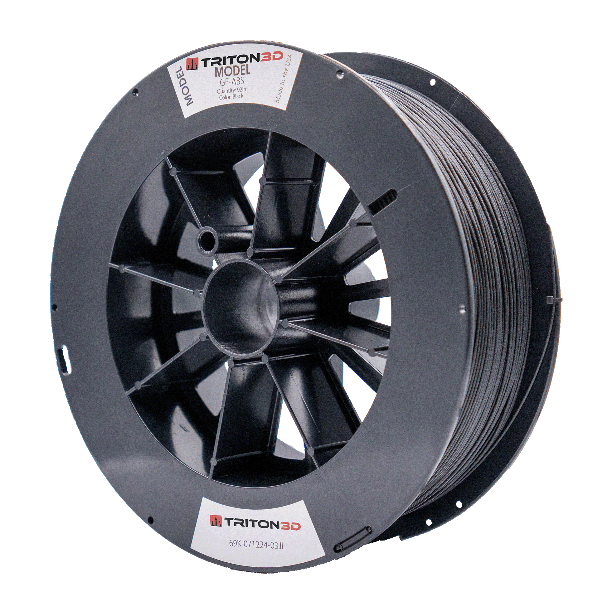 Triton3D ABS-GF is 100% compatible with Stratasys® Fortus® printer using the ABS-M30 EEPROM Chip (provided with your order). TriMax™ GF-ABS is a high-performance glass fiber reinforced ABS filament ideal for anyone that desires a structural component with high modulus, excellent surface quality, dimensional stability, and ease of printing. Made using Sabic® MG-94 premium ABS and 10% glass fiber reinforcement. We performed hundreds of hours of testing on this grade in Fortus® printers - both on our in-house printers and with outside beta testers. Due to the abrasive nature of glass fiber, you should anticipate a 50% reduction in tip-life due to higher wear rates vs. unfilled ABS.